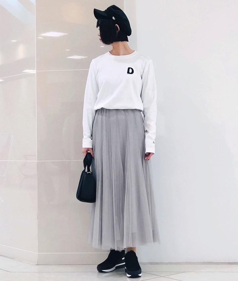 チュールスカートですが、ヒップ周りが広がらない美シルエットが特徴で、カジュアルから綺麗目のスタイルまで幅広くお楽しみ頂けます。