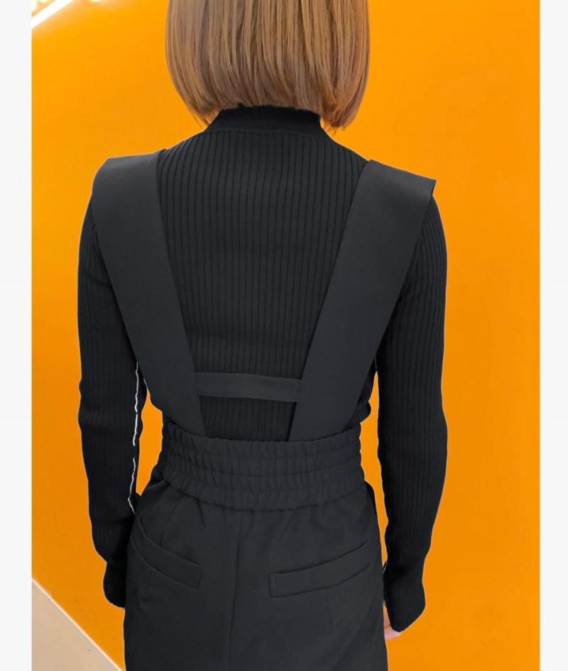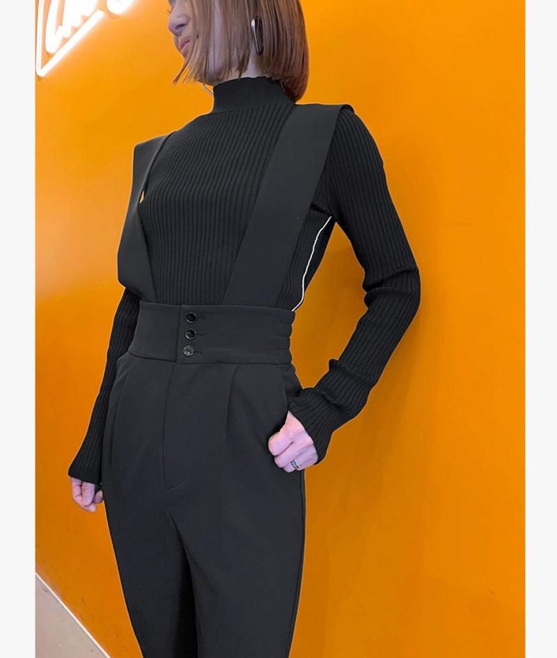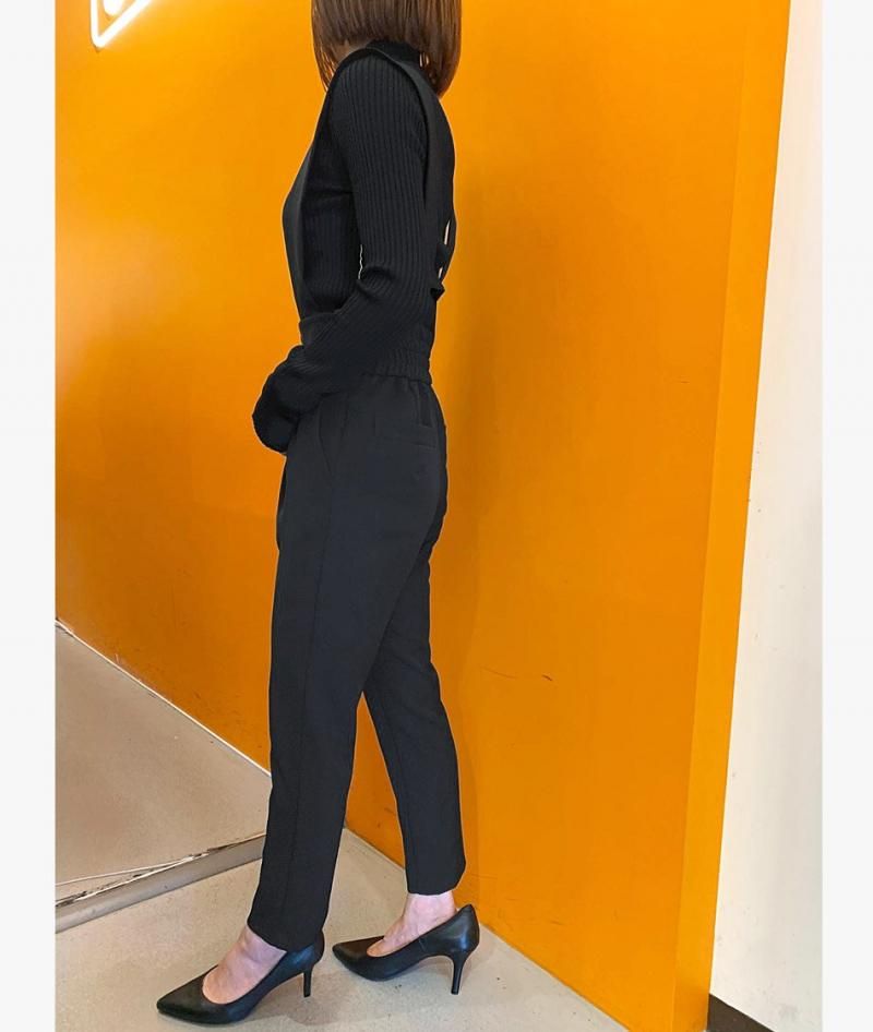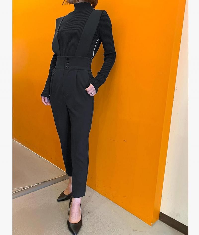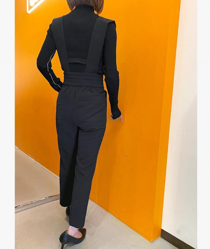 今季さらさら素材で登場したサスペンダー付きパンツ。
