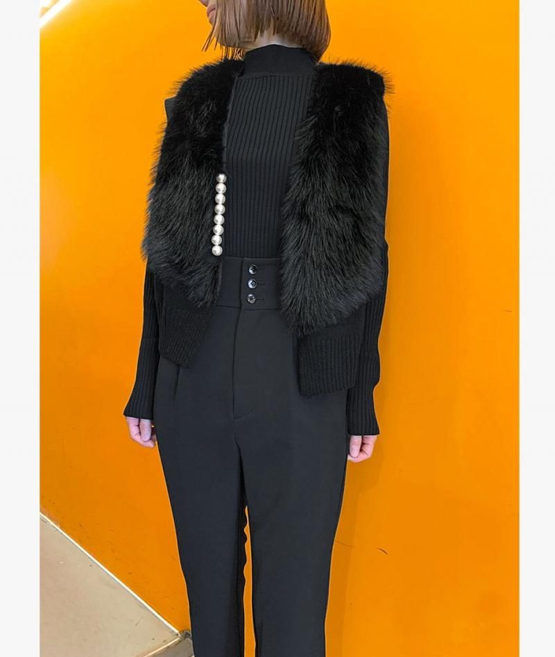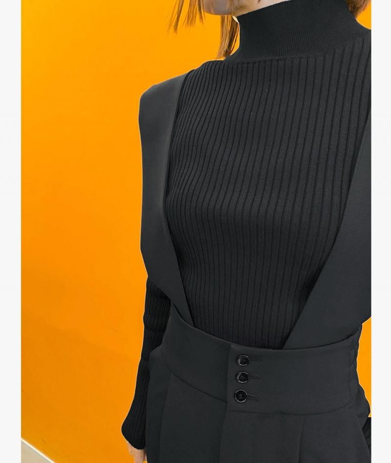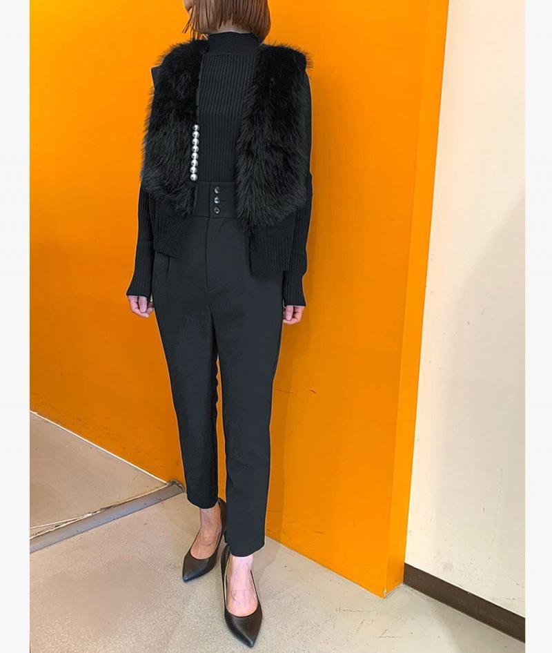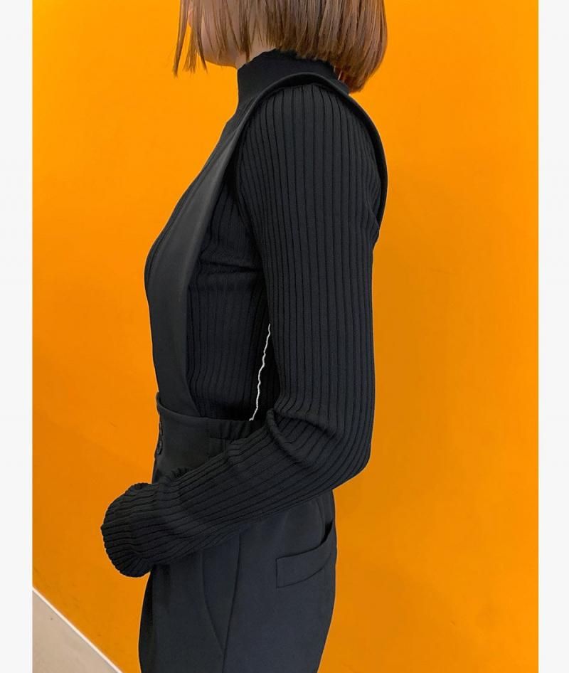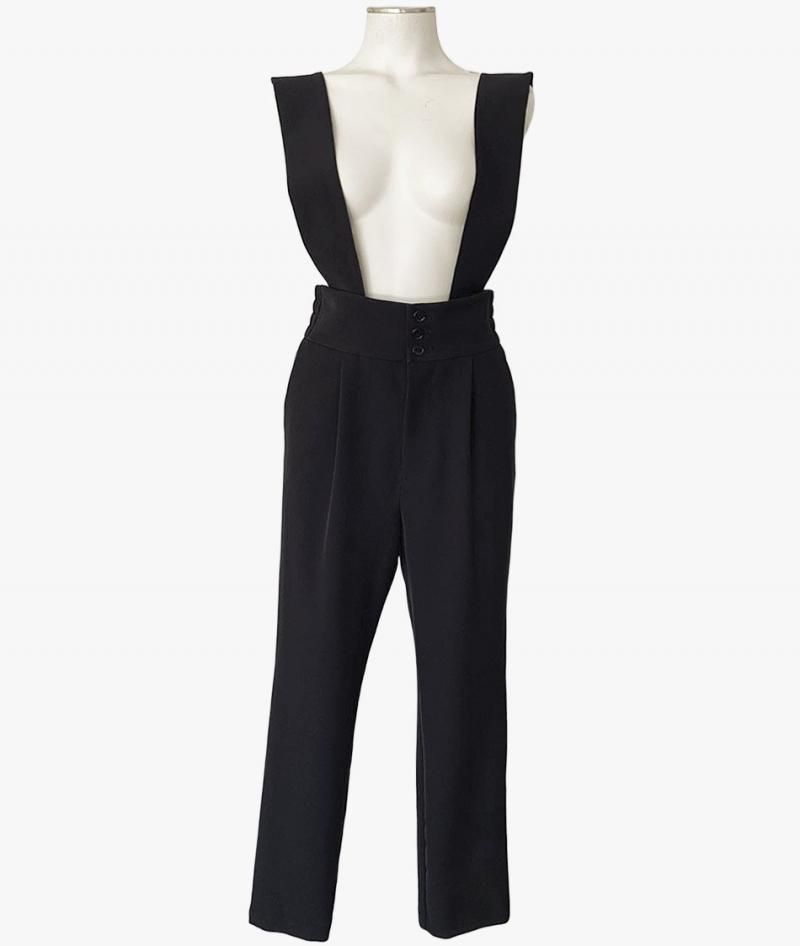 今季さらさら素材で登場したサスペンダー付きパンツ。
