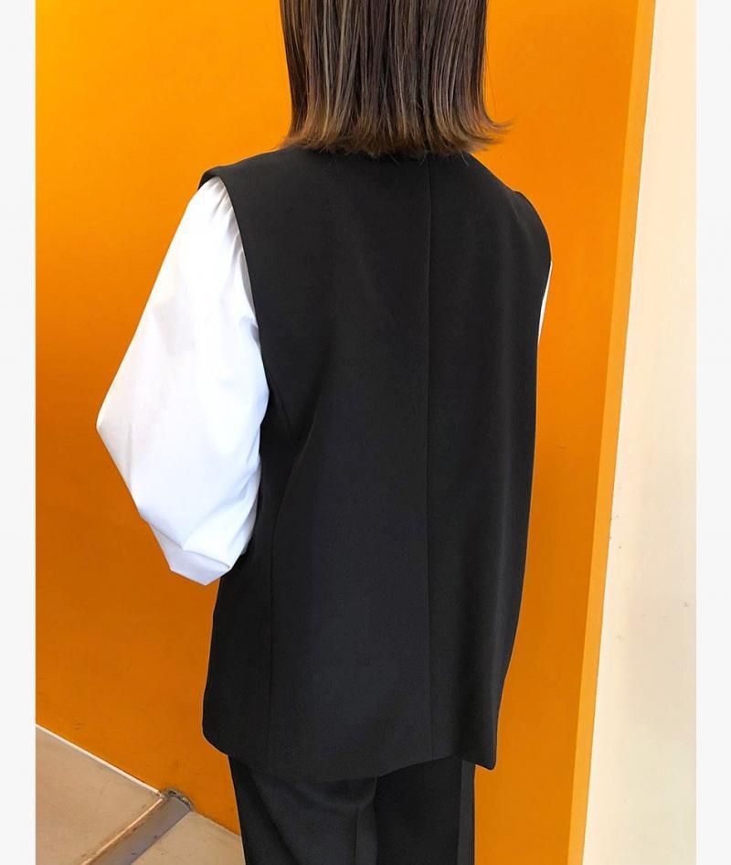 すっきりとしたノーカラーとヒップをカバーしてくれる丈感が絶妙でボトムを選ばず羽織るだけでお洒落に見せてくれます。