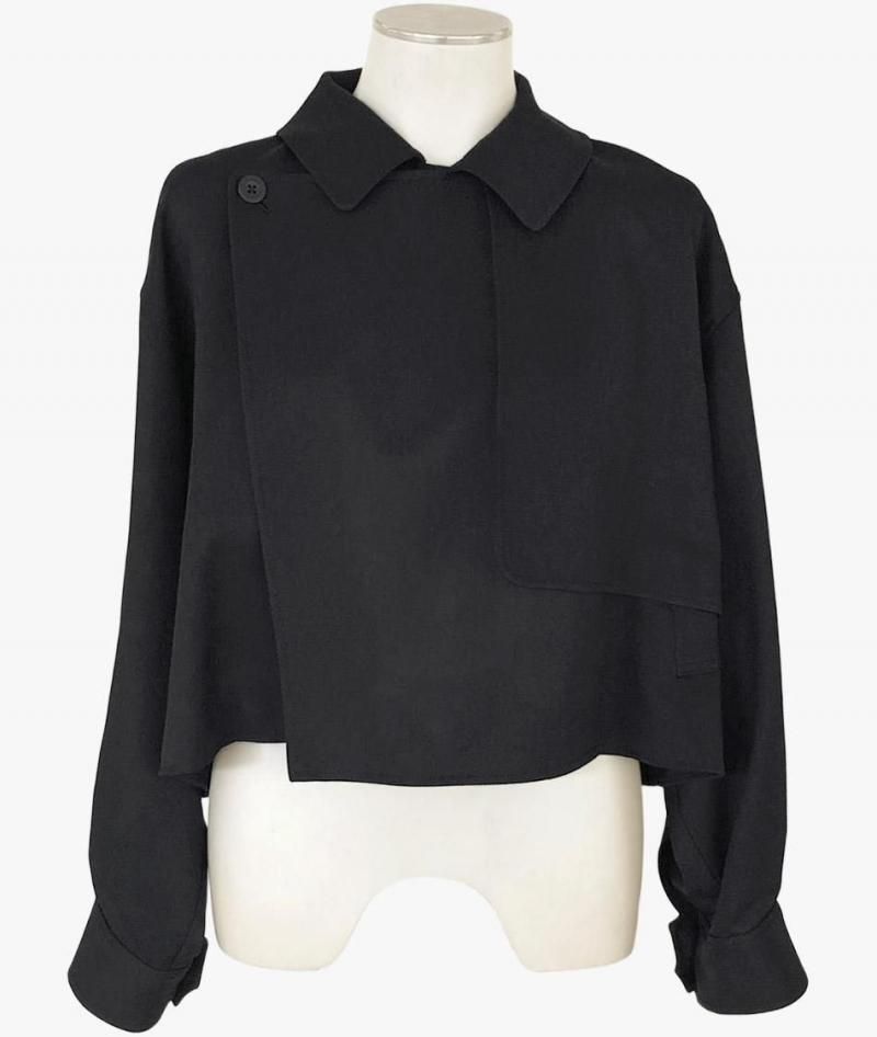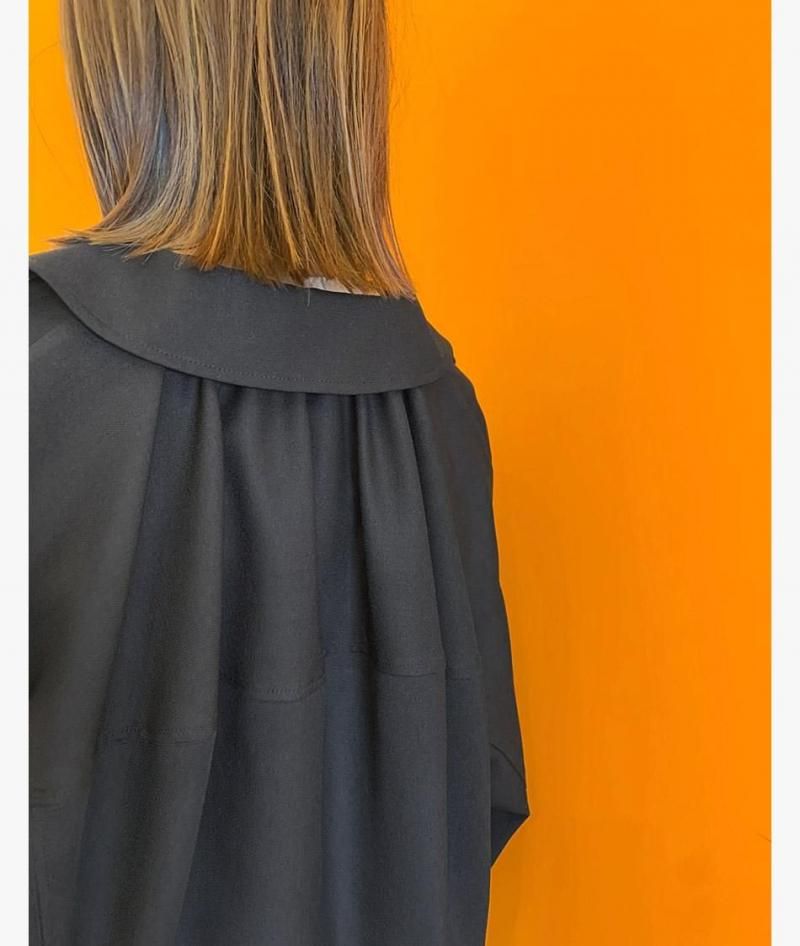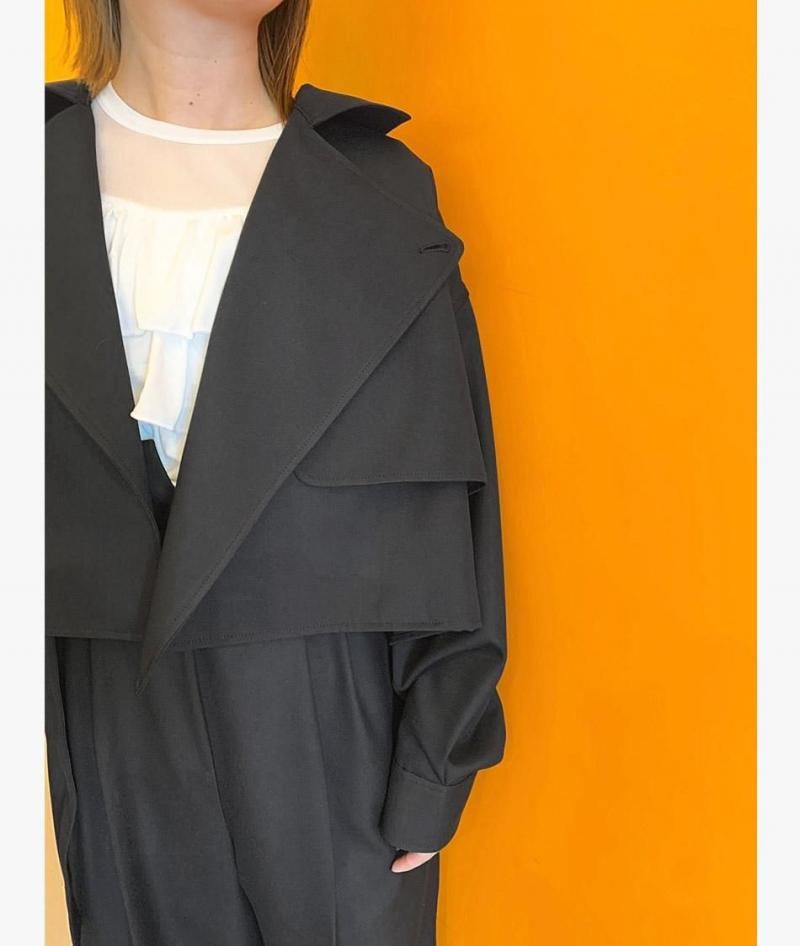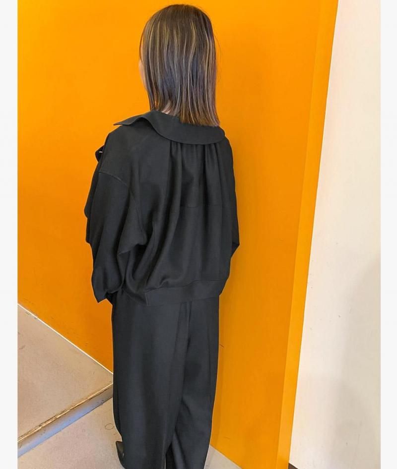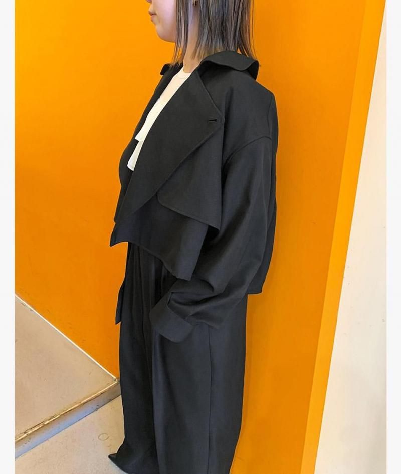 ゆったりとしたシルエットで、バックスタイルはタックが入っていることで、コクーンシルエットのような型に。