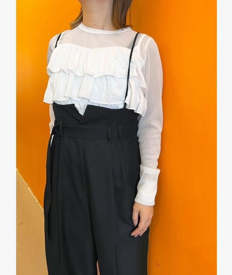 肩紐でウエストの位置も調整もして頂けるので、インナー次第で雰囲気も変えて頂ける大活躍のアイテムです。