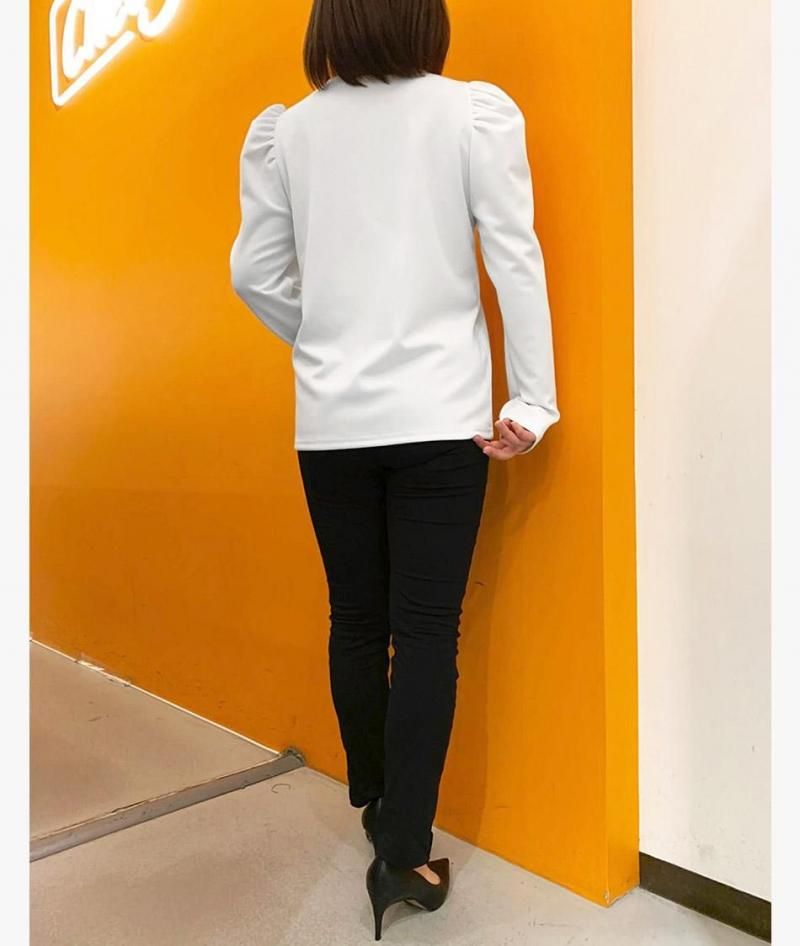 肩の部分はさりげなくパフになっていて女性らしいシルエットに。