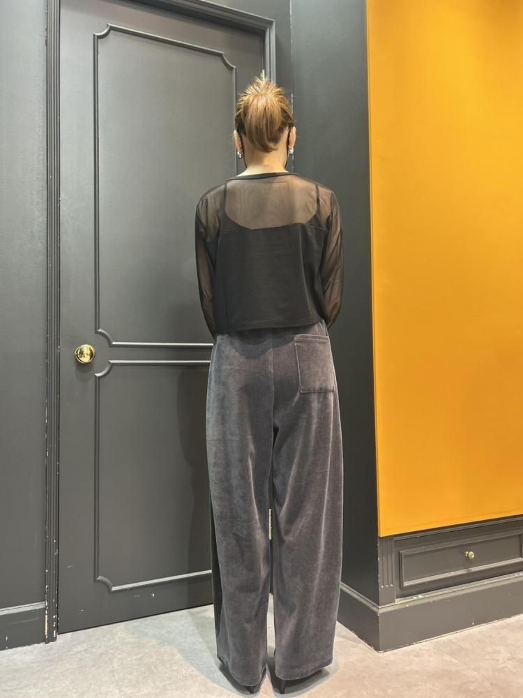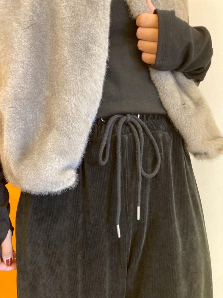 バルーンシルエットが特徴的なコーデュロイ素材のワイドパンツ。