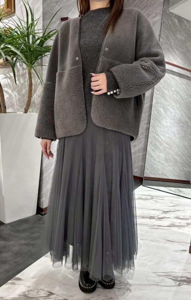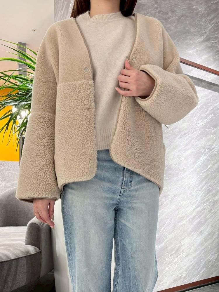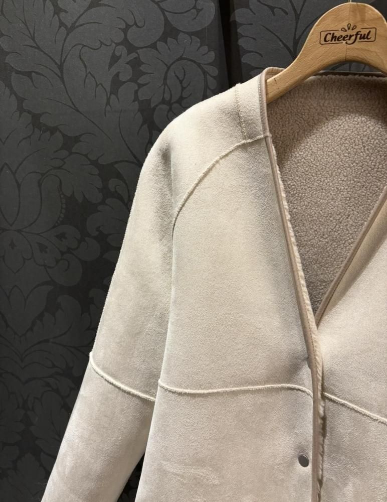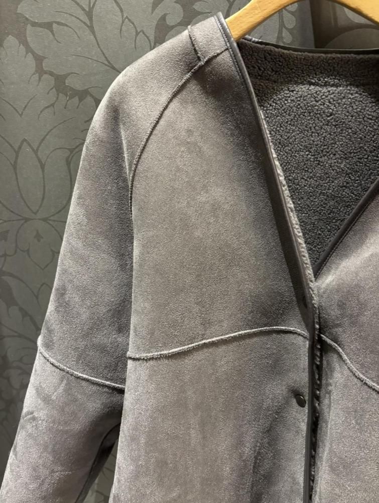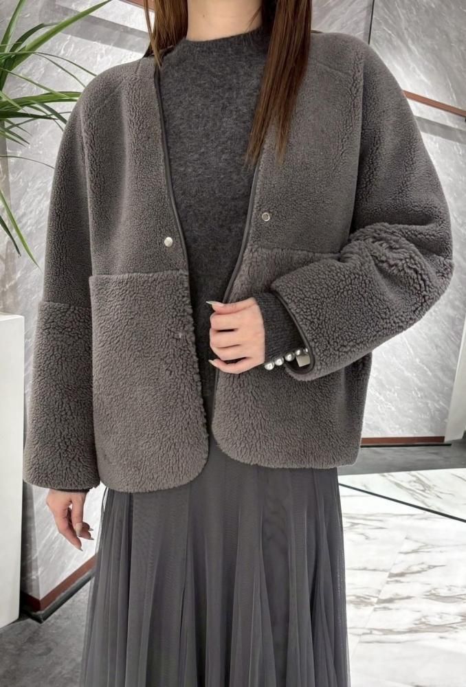 毛足で切り替えたボアと、滑らかな質感が魅力のスエード素材を使用したリバーシブルで着用できるアウターです。